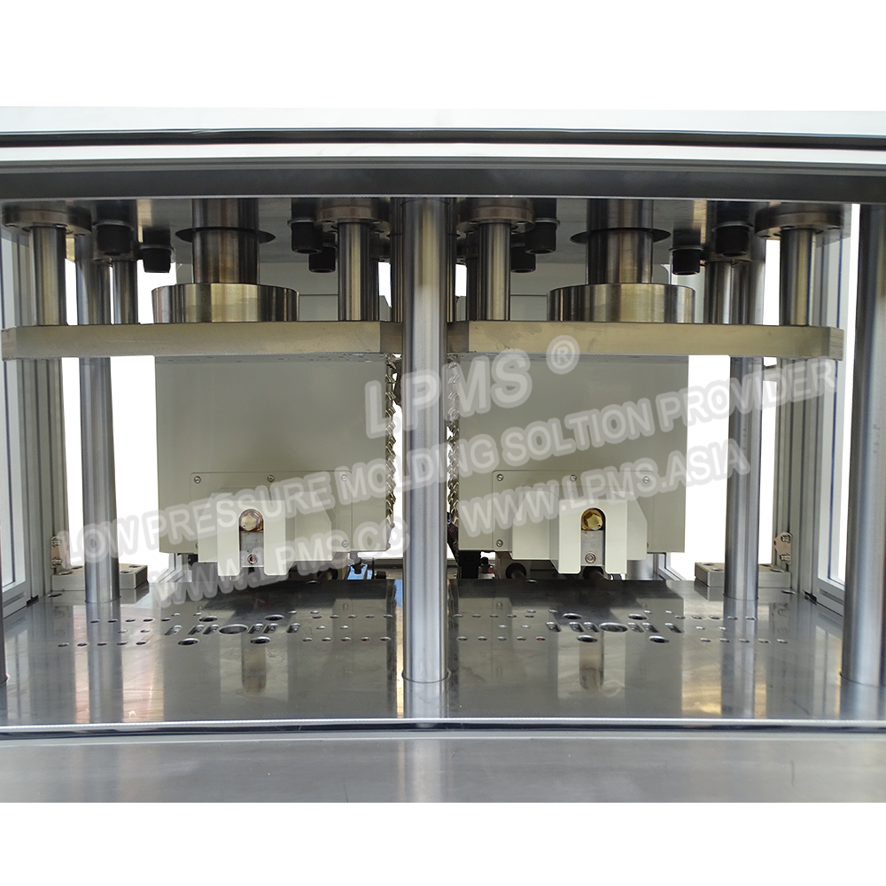 合模採用氣液增壓缸,合模力更大,適合注膠面積較大、注膠量大產(chǎn)品的大批量生產(chǎn)。
