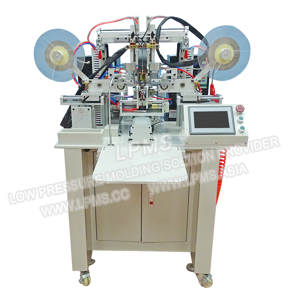 The machine inserts the battery to the plastic bag and pack it automatically.